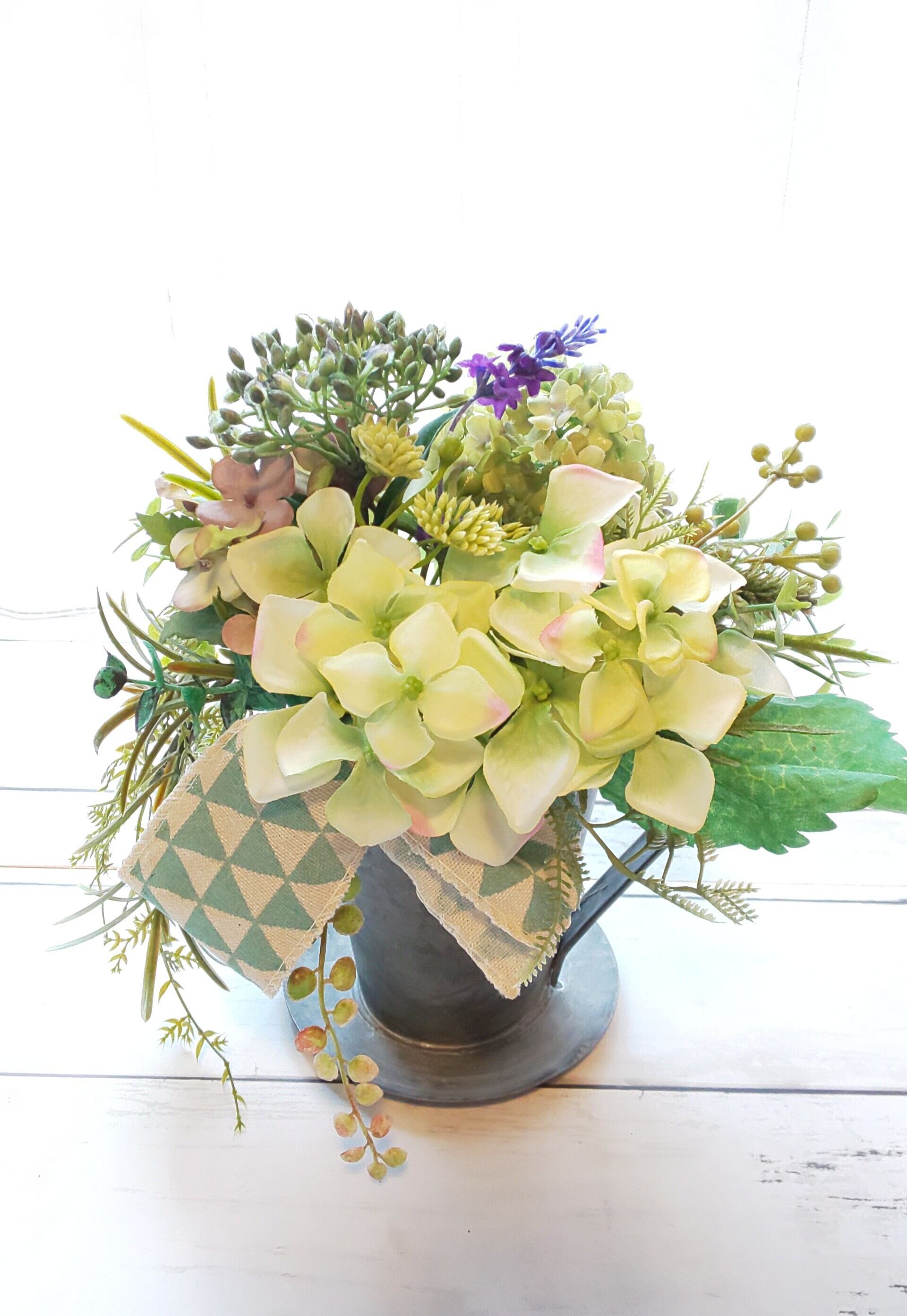 グリーン系のアジサイ、スノーボール、ビバーナム、ラベンダー等、ナチュラルな色合いの多種なお花を使ったアレンジ。